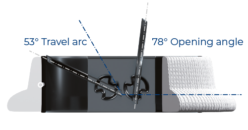 The opening angle and travel arc of the Carbomedics valves’ leaflets are determined by hydrodynamic testing in order to achieve low pressure gradients and an optimal balance between forward flow and regurgitant volume, thus minimizing total energy loss while promoting quiet functioning.