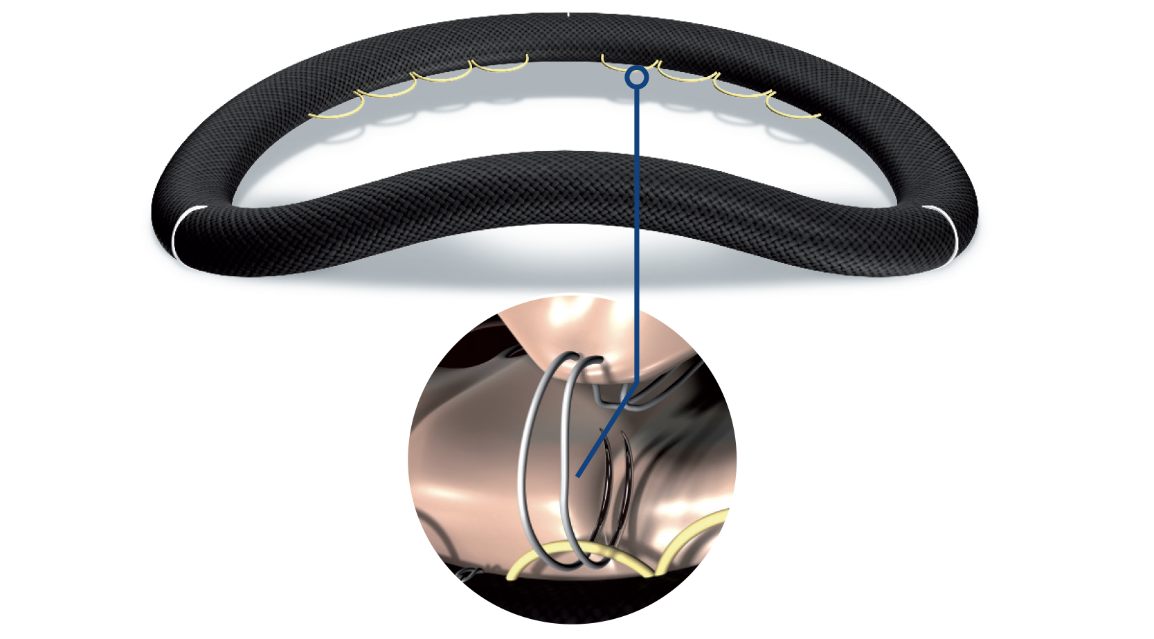 A series of loops in the posterior region act as temporary reference elements for easier length sizing of chords for both anterior and posterior repair.
