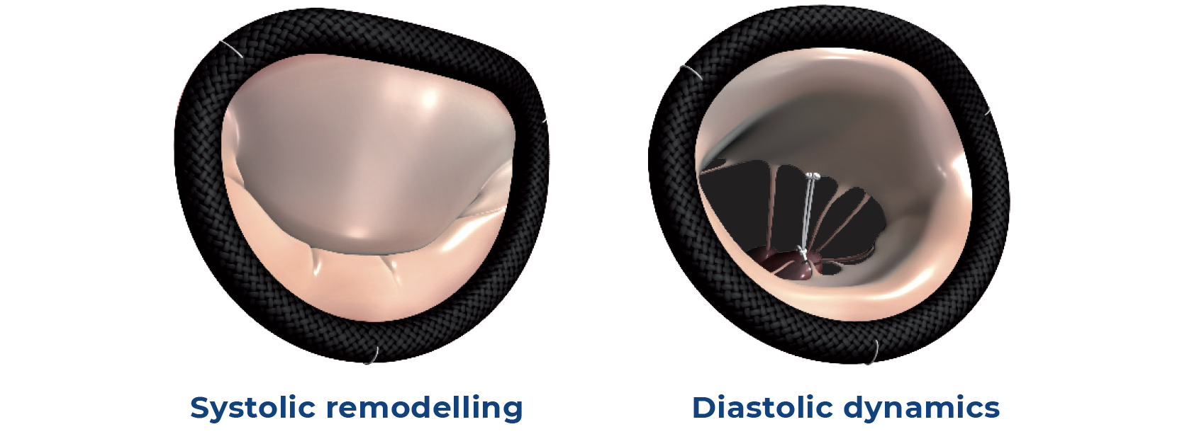 Truly physiological three-dimensional motion of the mitral annulus with a natural anterior/posterior to lateral/lateral relationship to maximize blood flow5, even five years after implantation.6,10